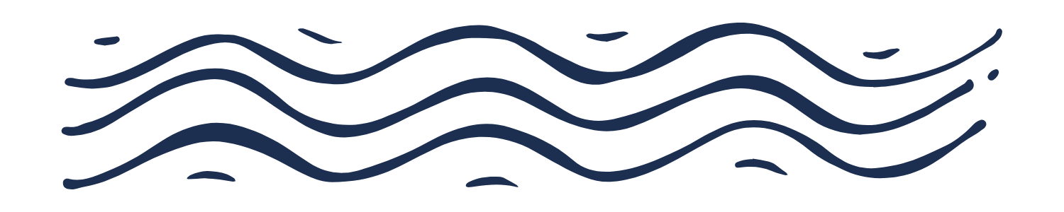 Custom woodcut-style illustration series representing ocean animal friends and waves