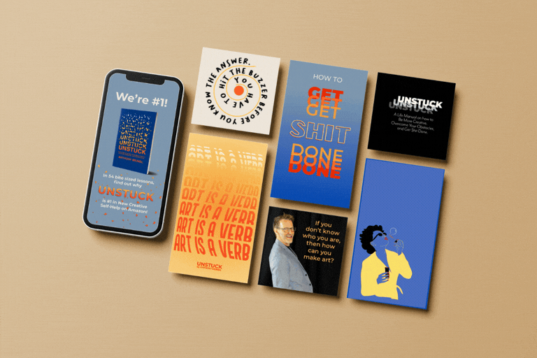 A fully realized book launch that helped bring UNSTUCK to #1 on Amazon in its first week, supported by an integrated campaign ecosystem that translated a personal philosophy into a scalable creative platform.