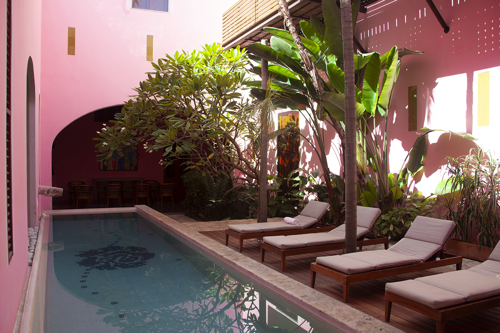 One such hotel is Rosas Y Xocolate, which just celebrated its 10th anniversary and has been at the forefront of the city’s recent artistic and economic resurgence. Owner Carol Kolozs Fischer’s vision transformed it into a stunning wonder that honors its history while establishing the contemporary spirit of Mérida’s future. Made up of two neighboring mansions once long abandoned, romance is in the very walls of this cheerfully pink hotel.